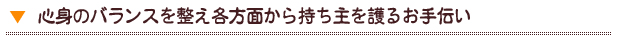 | 心身バランスを保ち優しさ養う/愛情深く他人を受容する寛容さ/安心感と心の穏やかさの維持 |